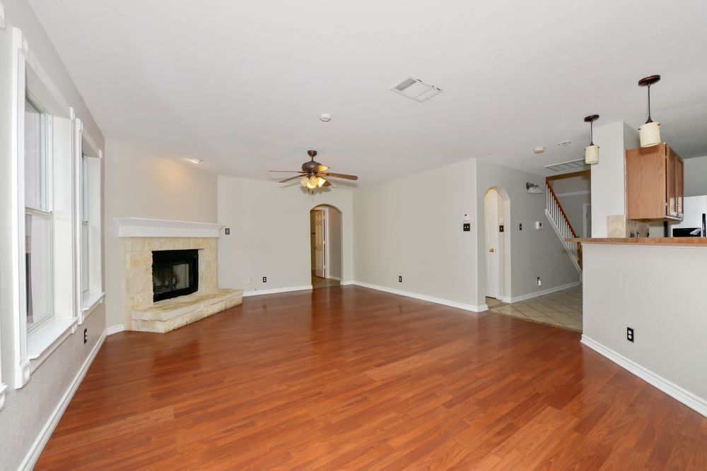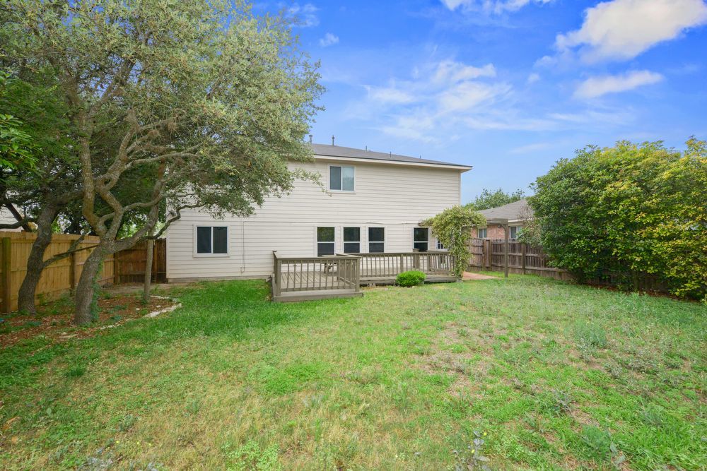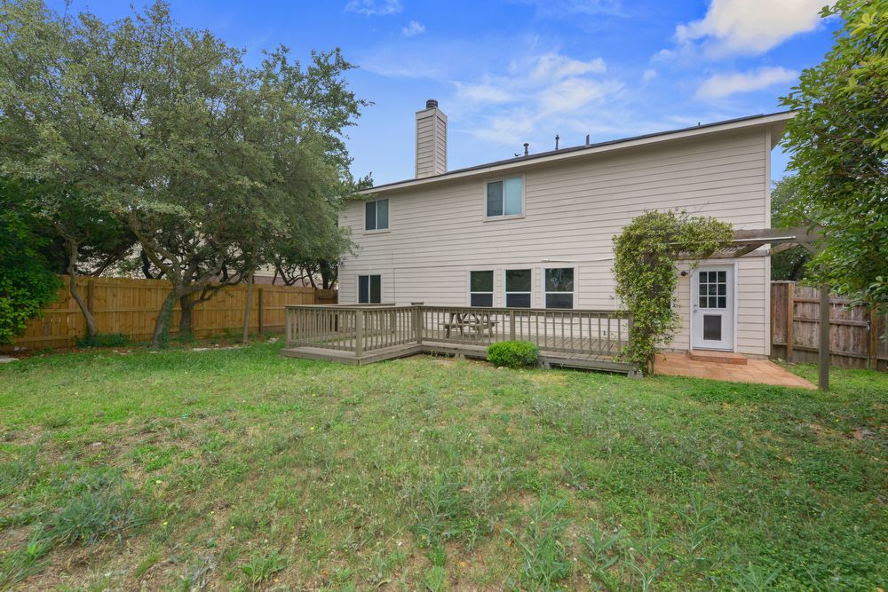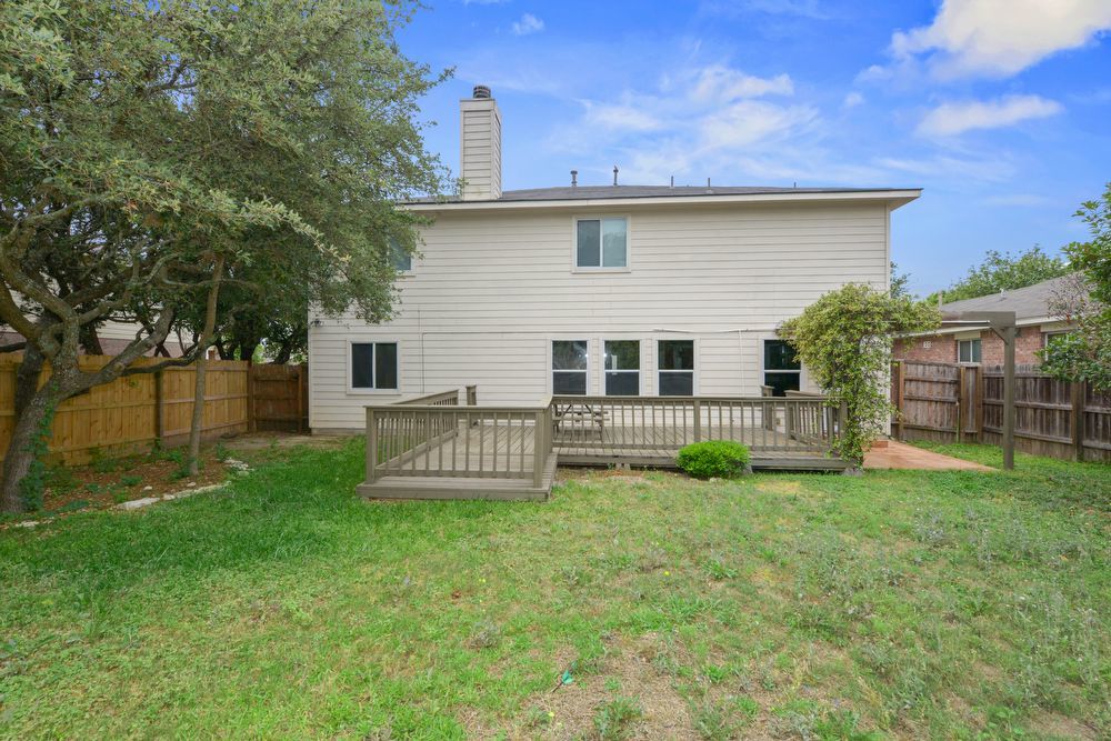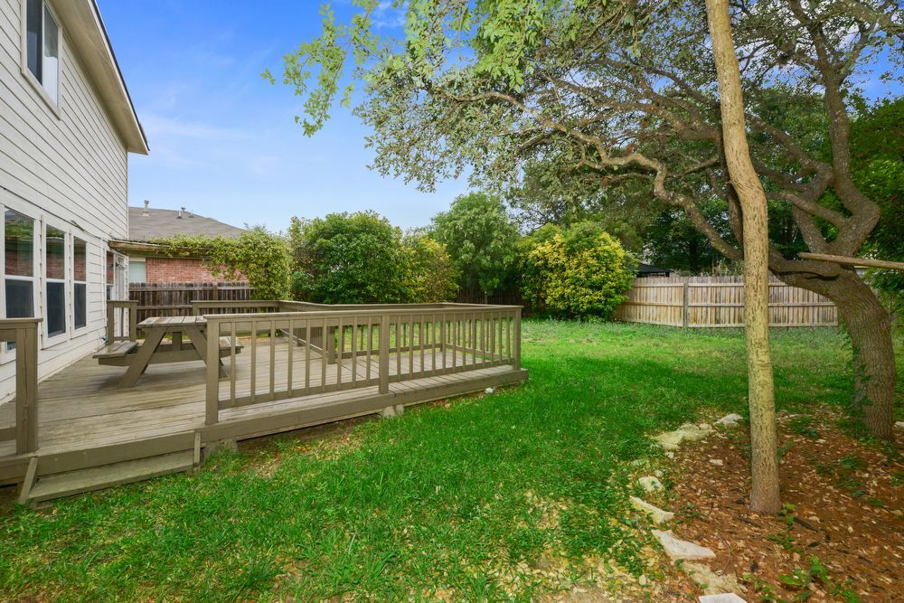 Spacious home with one bedroom and full bath downstairs, and three bedrooms up. Large master suite with walk-in closet, garden tub, and separate shower. Enjoy the private fenced backyard with mature trees and deck. Open family room, great layout, and easy access to Loop 1604.