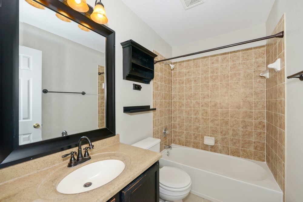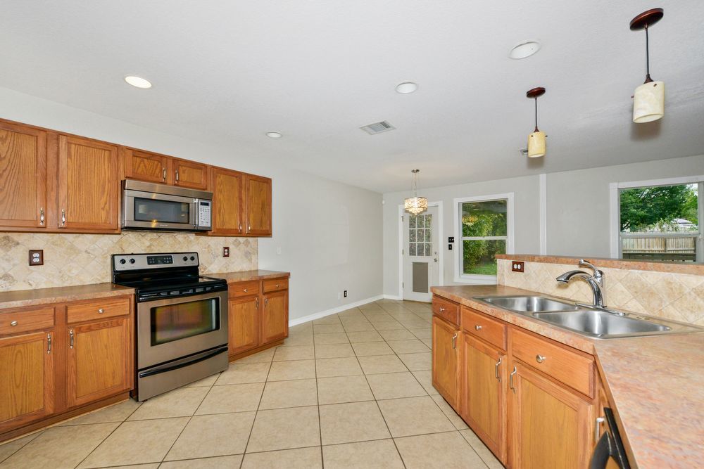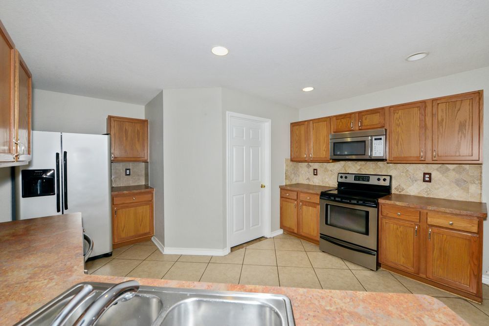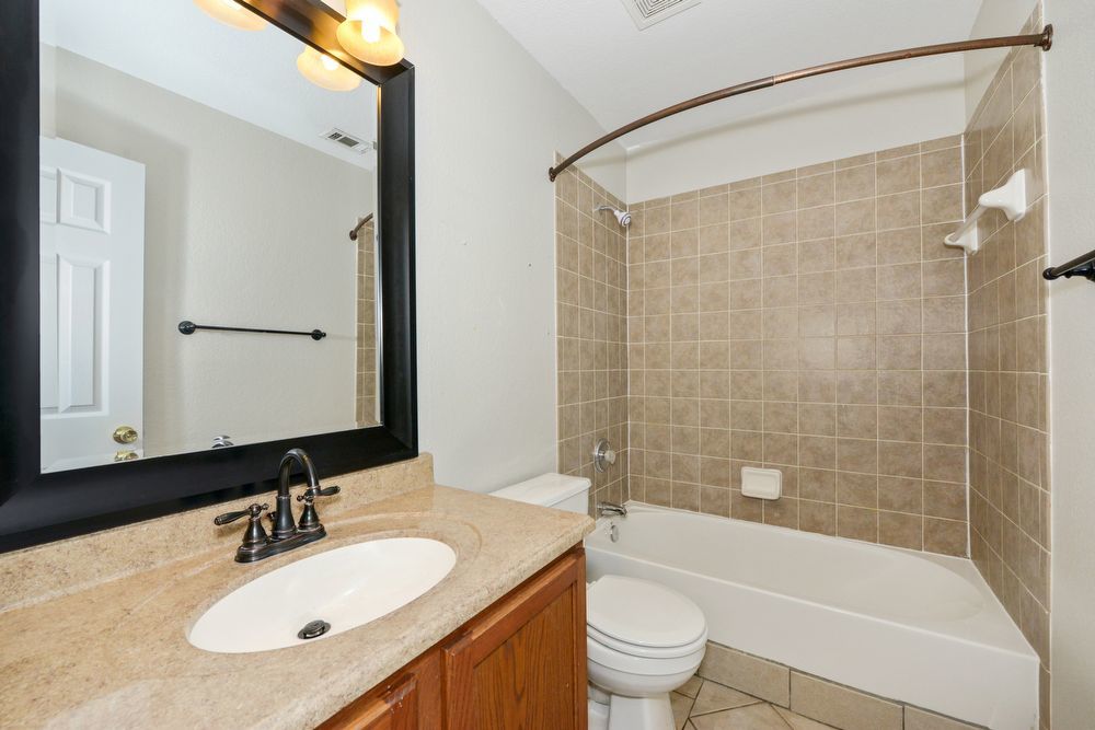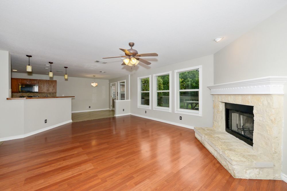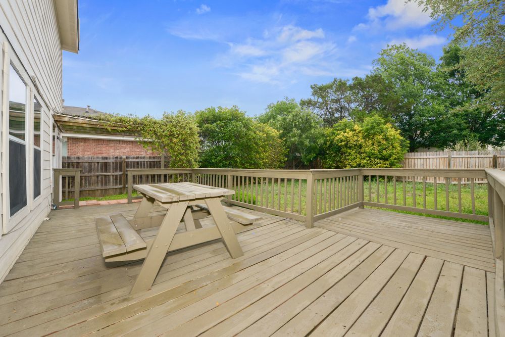 Spacious home with one bedroom and full bath downstairs, and three bedrooms up. Large master suite with walk-in closet, garden tub, and separate shower. Enjoy the private fenced backyard with mature trees and deck. Open family room, great layout, and easy access to Loop 1604.
