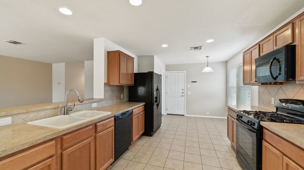 Welcome to this inviting property available for lease in the highly sought-after Encino Ridge subdivision. This lovely home boasts 3 bedrooms and 2 bathrooms, perfect for comfortable living. As you step inside, you'll immediately notice the open floor plan, creating a sense of spaciousness throughout. One of the standout features of this home is the absence of carpeting, providing a clean and modern feel. The spacious living area offers ample room for relaxation and entertainment, while the formal dining room adds an elegant touch for special occasions. The eat-in kitchen is a chef's dream, complete with sleek black appliances, including a refrigerator. You'll find plenty of space on the generously sized counters and numerous cabinets for all your culinary needs. Step outside to the backyard and discover a delightful wood deck, perfect for enjoying outdoor meals, hosting gatherings, or simply unwinding in a peaceful setting. This property offers the perfect blend of comfort and style, making it an ideal place to call home. Don't miss out on this exceptional lease opportunity in Encino Ridge!