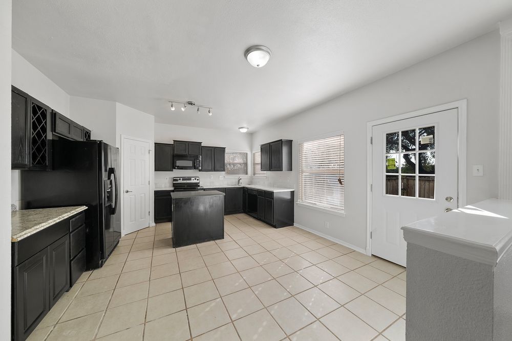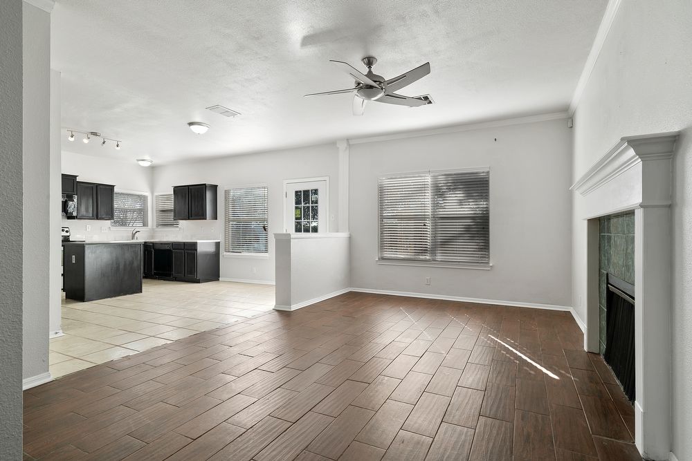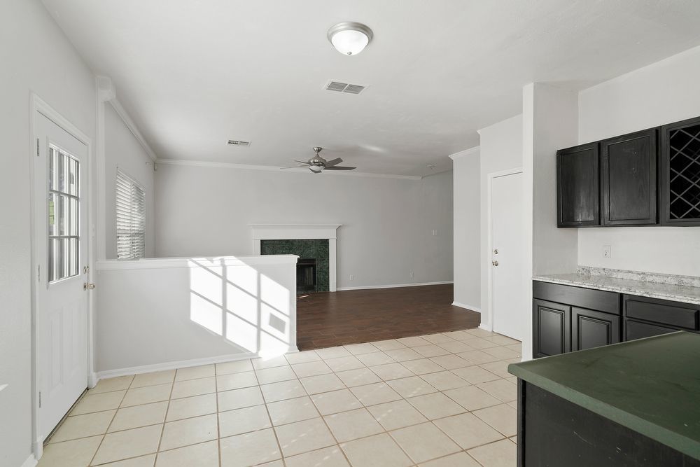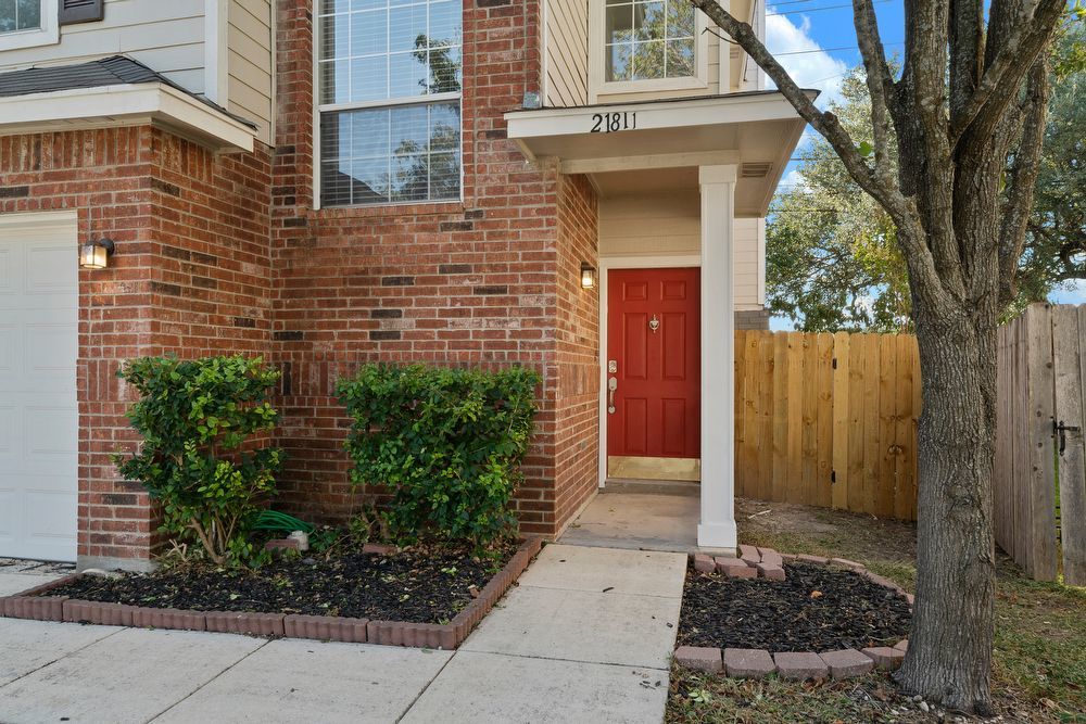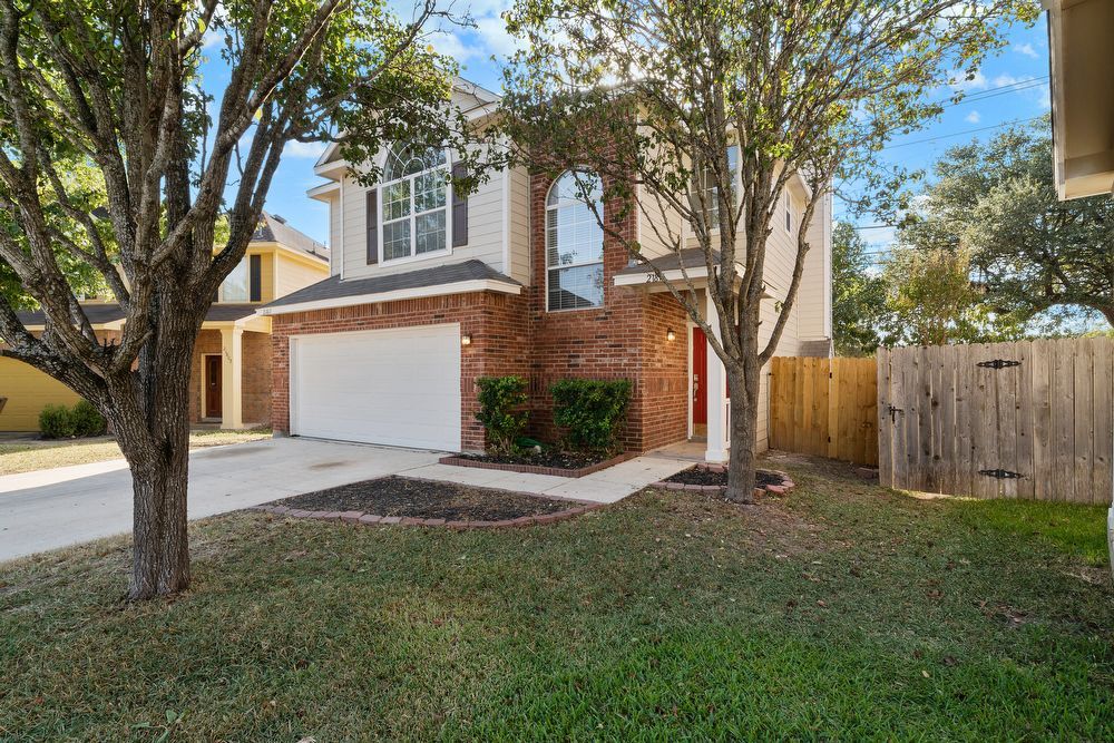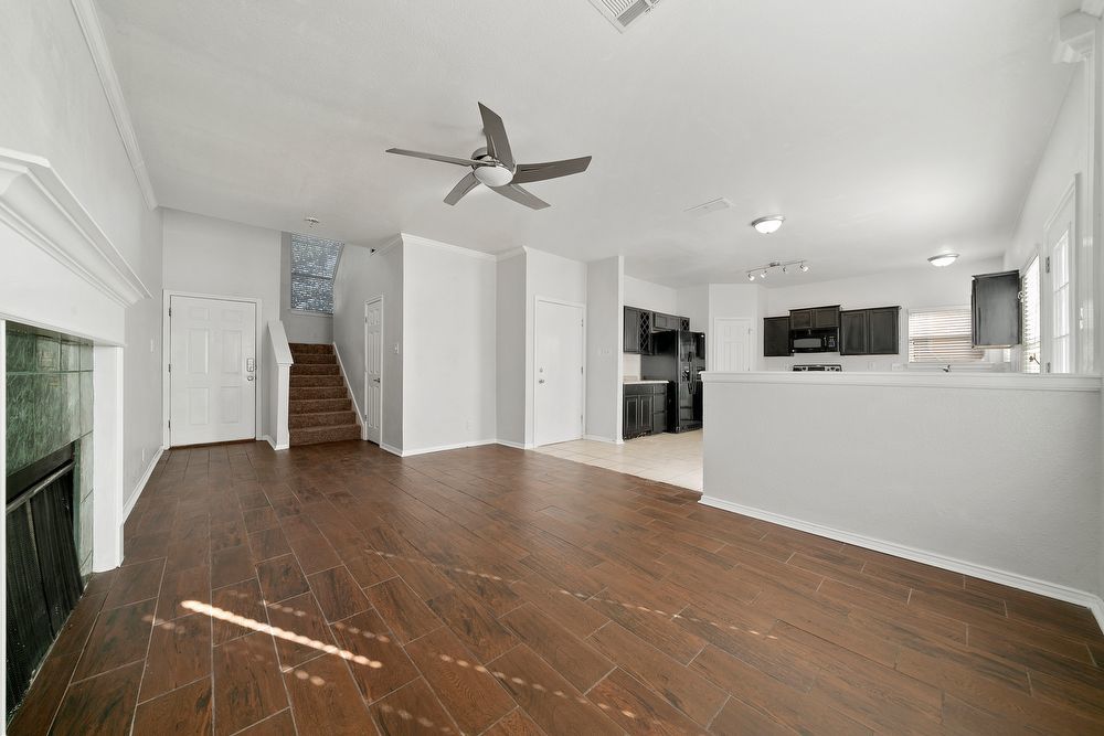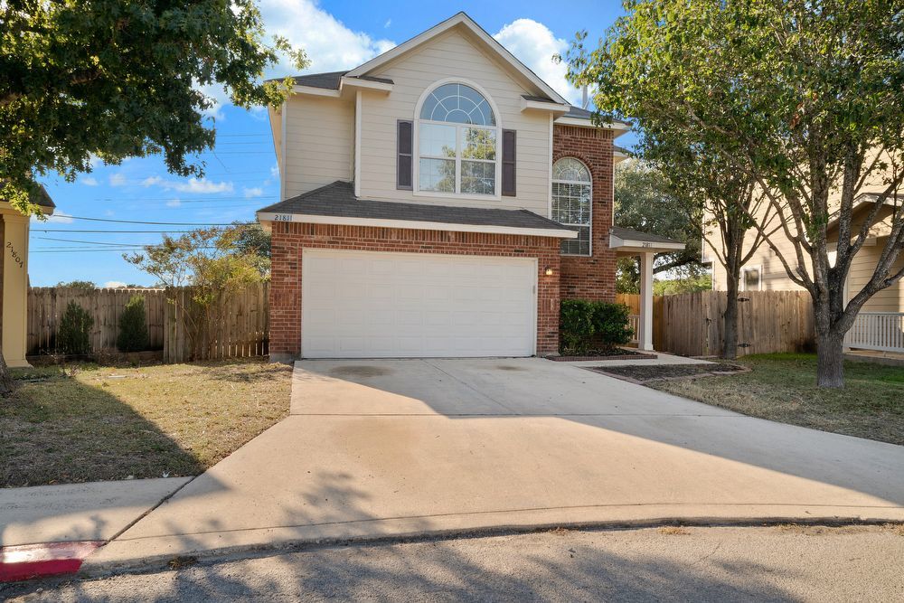 Welcome to your dream home in the highly desirable Vistas at Stone Oak community! This beautiful 3-bedroom, 2.5-bathroom residence offers the perfect blend of style and comfort. From the charming curb appeal with its bold red front door to the spacious 2-car garage, every detail has been thoughtfully designed. Step inside to a bright and inviting living area featuring wood-look vinyl flooring, a cozy fireplace, and a ceiling fan-ideal for both relaxing nights in and entertaining guests. The chef-inspired kitchen is sure to impress with sleek black cabinetry, stainless steel appliances, a large island, and a convenient breakfast bar for casual dining. Don't miss your chance to make this home yours!
