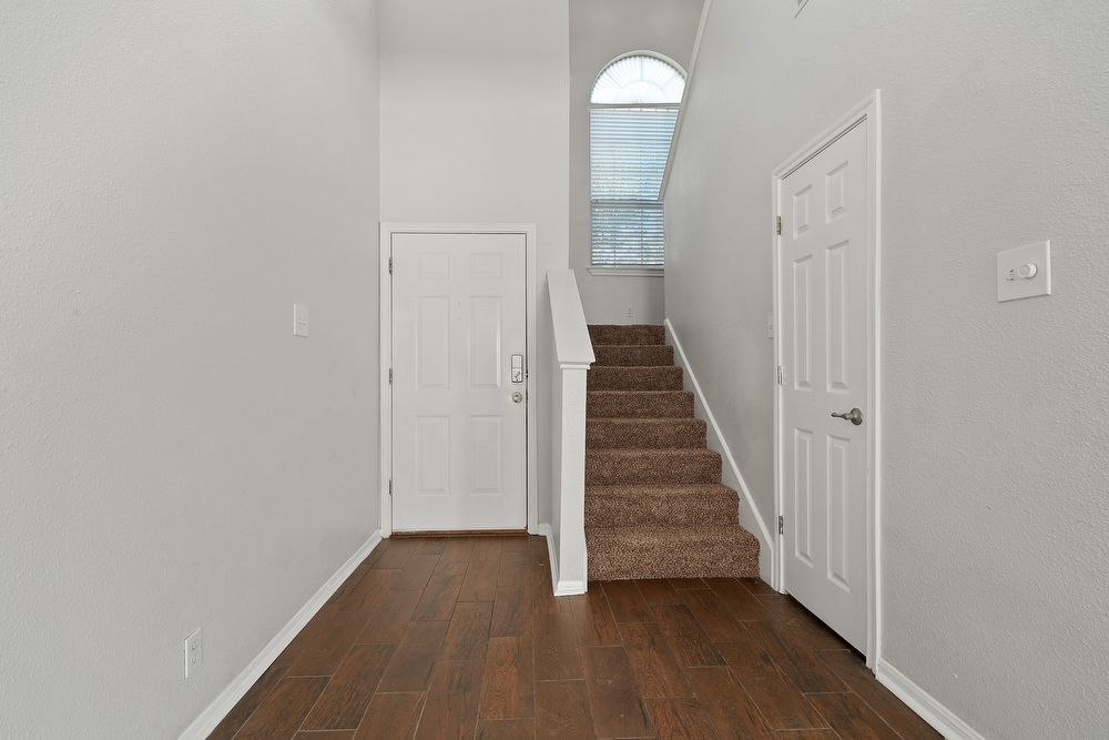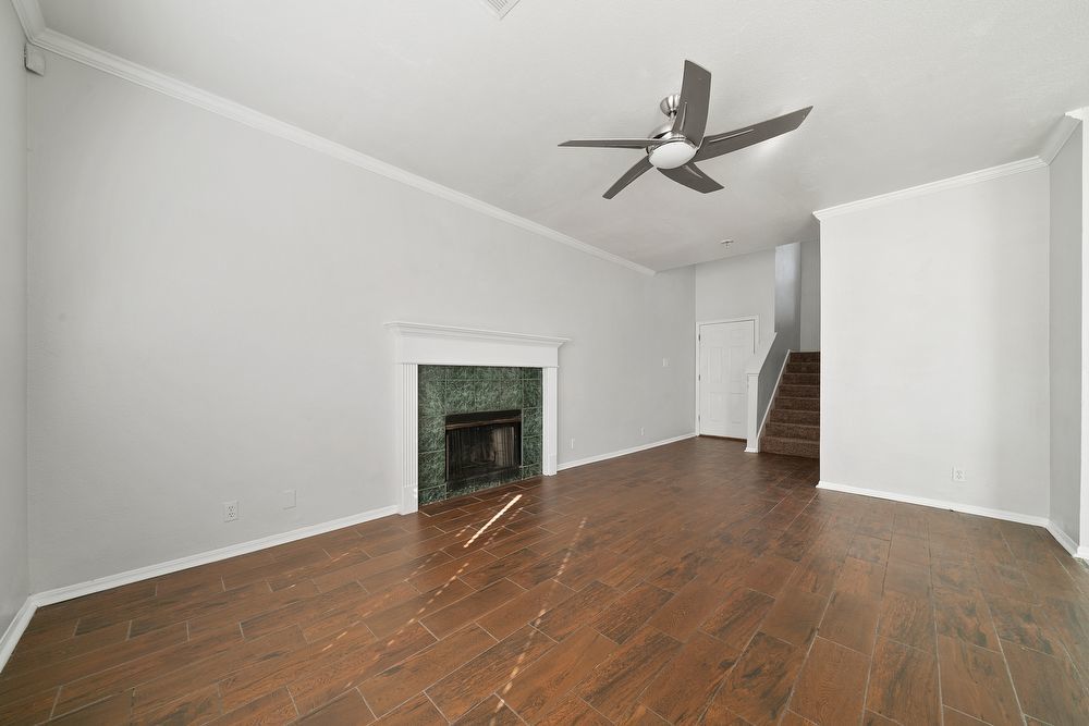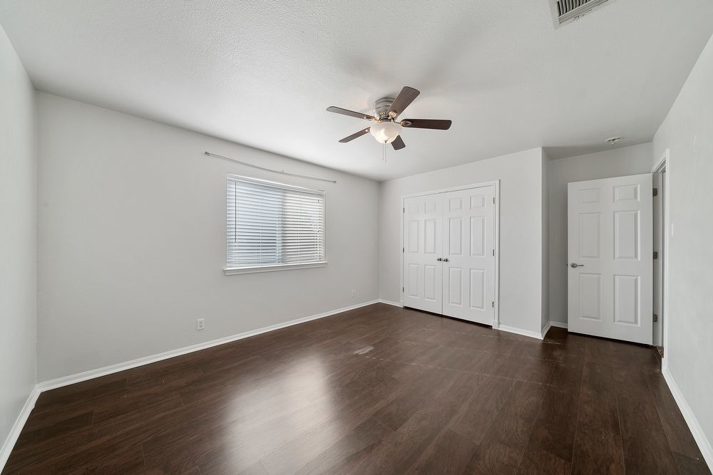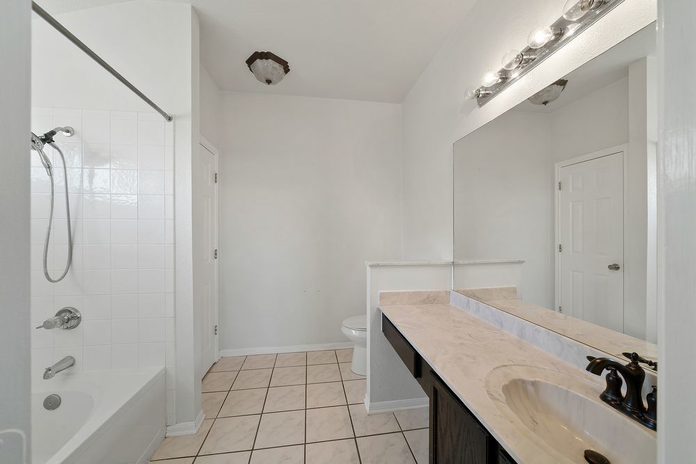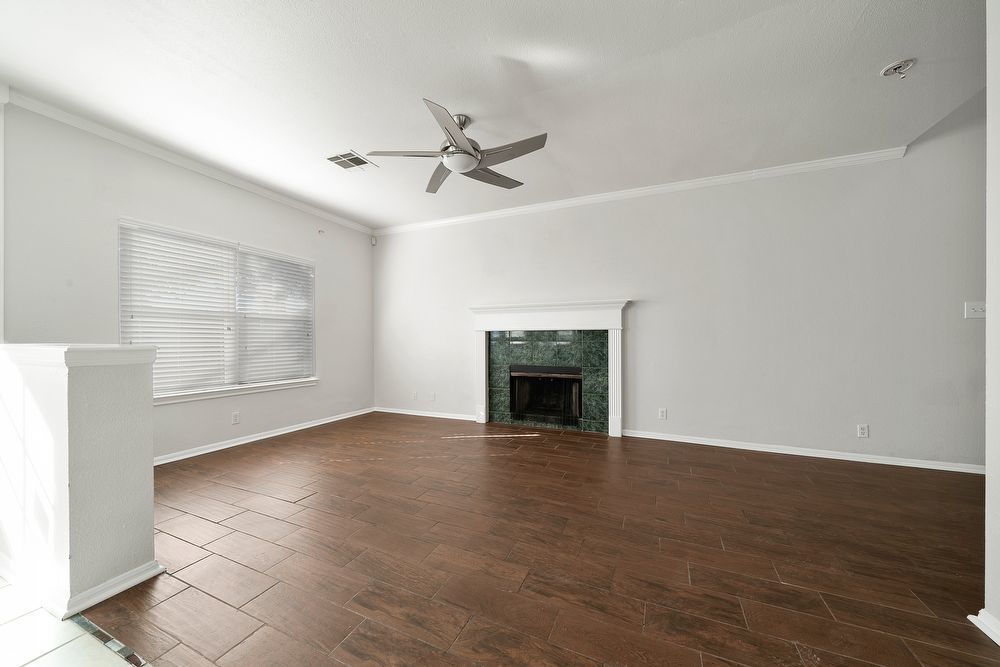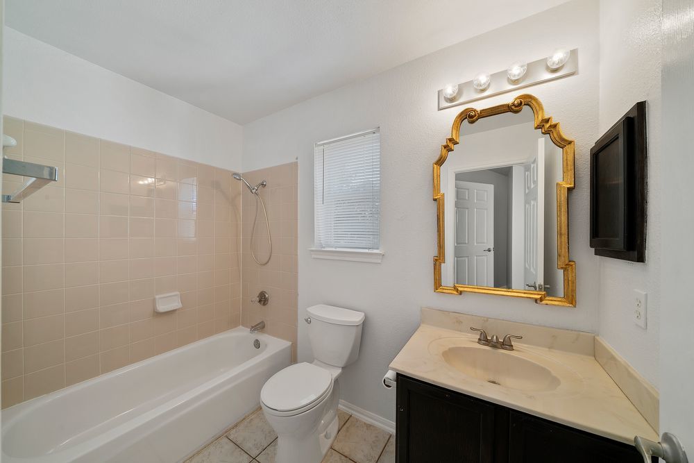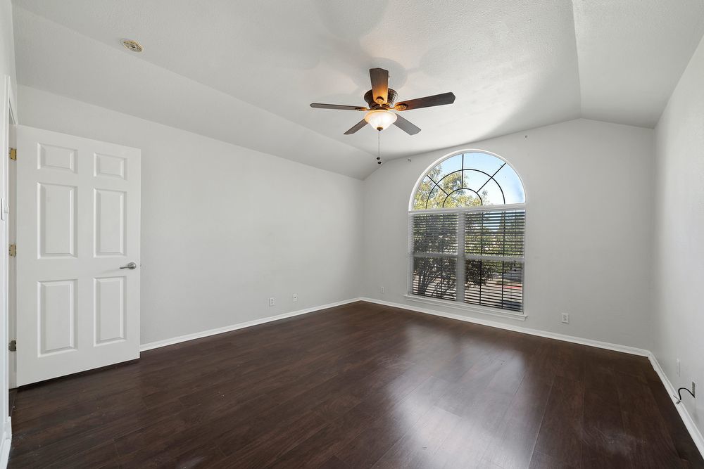 Welcome to your dream home in the highly desirable Vistas at Stone Oak community! This beautiful 3-bedroom, 2.5-bathroom residence offers the perfect blend of style and comfort. From the charming curb appeal with its bold red front door to the spacious 2-car garage, every detail has been thoughtfully designed. Step inside to a bright and inviting living area featuring wood-look vinyl flooring, a cozy fireplace, and a ceiling fan-ideal for both relaxing nights in and entertaining guests. The chef-inspired kitchen is sure to impress with sleek black cabinetry, stainless steel appliances, a large island, and a convenient breakfast bar for casual dining. Don't miss your chance to make this home yours!