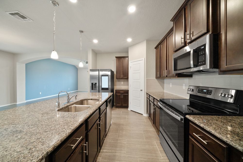 Discover the perfect blend of comfort and functionality in this beautiful home, featuring two spacious primary suites-ideal for multi-generational living or hosting guests. The flexible floor plan also offers a game room and a dedicated study room, providing ample space for work, play, and relaxation. The heart of the home is the impressive kitchen, boasting stainless steel appliances, a large island, granite countertops, and a walk-in pantry-perfect for both everyday meals and entertaining. Enjoy outdoor living in the large backyard, and take advantage of the wonderful community amenities, including a pool, clubhouse, park with playscape, and picnic areas. Located in the sought-after Cinco Lakes subdivision, this home is minutes from Lackland AFB and offers easy commuting to Randolph Air Force Base and Downtown San Antonio. Don't miss your chance to own this exceptional property-schedule your showing today!