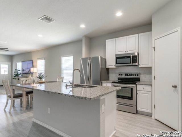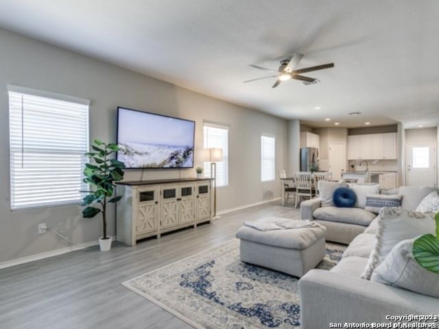 Discover the perfect family home nestled in the heart of Converse, Texas, in the coveted Horizon Pointe subdivision. This spacious 4-bedroom, 2-bathroom residence offers a warm and welcoming atmosphere with a plethora of desirable features. As you step inside, you'll immediately appreciate the open floor plan, which creates a sense of flow and connectivity throughout the home. The property boasts two distinct living spaces, providing flexibility for both relaxation and entertainment. Natural light floods the interior, thanks to strategically placed skylights, creating a bright and inviting ambiance. One of the standout features of this property is the thoughtful inclusions like pest control, making your stay comfortable and worry-free. The kitchen is a true chef's delight, complete with a modern kitchen island, stainless steel appliances, and ample cabinet space. The solid countertops offer both style and functionality for your culinary adventures. Step outside to a spacious backyard, perfect for outdoor gatherings and play. The Horizon Pointe subdivision also offers an array of fantastic community amenities, including a pool, park, jogging trails, and bike trails, allowing you to stay active and make the most of your free time.