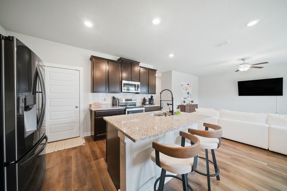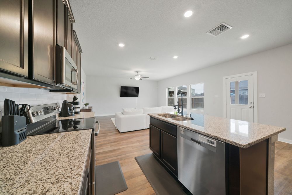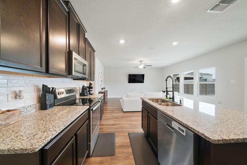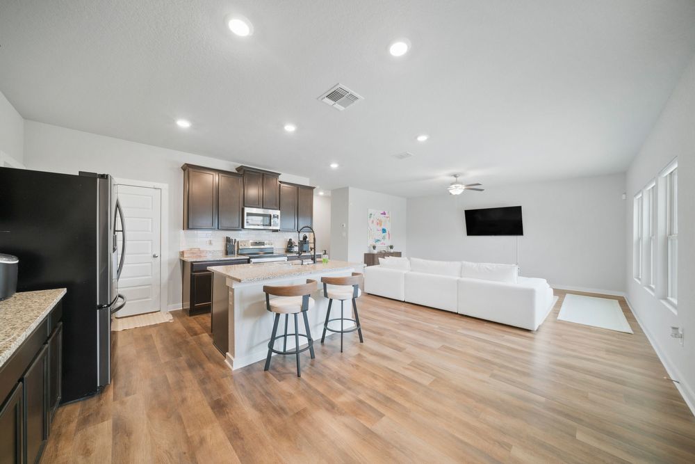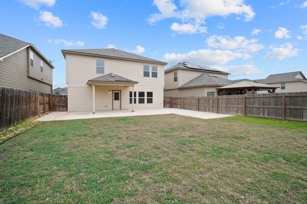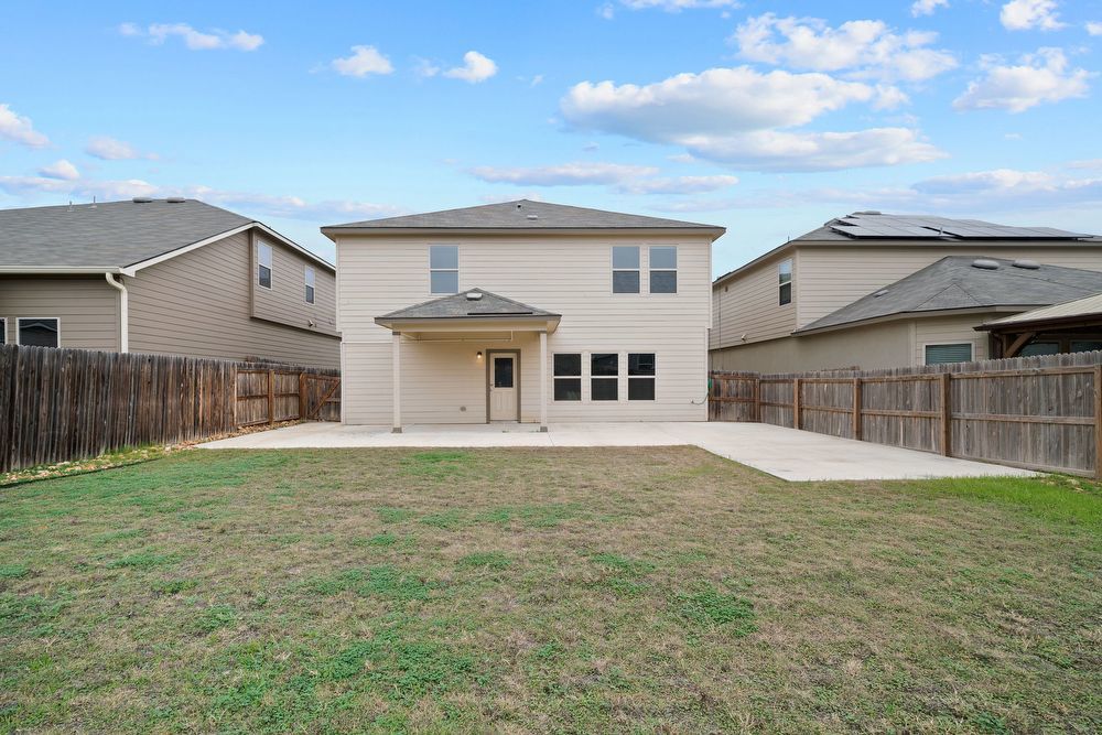 Welcome to your dream home in the prestigious Cinco Lakes subdivision! This stunning property offers an exceptional living experience with its 4 bedrooms and 2.5 bathrooms, providing ample space for comfort and convenience. As you step inside, you'll be greeted by an inviting open floor plan that seamlessly connects the living spaces, allowing for a perfect flow throughout the home. The abundance of natural light accentuates the contemporary design, creating a warm and welcoming atmosphere. Entertainment is taken to the next level with the inclusion of a dedicated game room, perfect for hosting gatherings and creating lasting memories. The well-appointed kitchen boasts stainless steel appliances, granite countertops, an island, and plenty of cabinets, making it a chef's delight. The breakfast bar adds a casual dining option, perfect for quick meals and morning conversations. A dedicated laundry room ensures that chores are a breeze, adding to the overall functionality of the home. Moving outside, you'll discover a spacious backyard, enclosed by a privacy fence, providing a perfect retreat for outdoor activities and relaxation. The covered patio offers an ideal spot for al fresco dining or simply enjoying the beautiful Texas weather. Conveniently located off Loop 1604 and Highway 90, Cinco Lakes ensures easy commuting to Lackland Air Force Base or Downtown San Antonio, making it an ideal location for those with diverse lifestyle needs. Don't miss the opportunity to make this house your home – a perfect blend of style, comfort, and convenience.