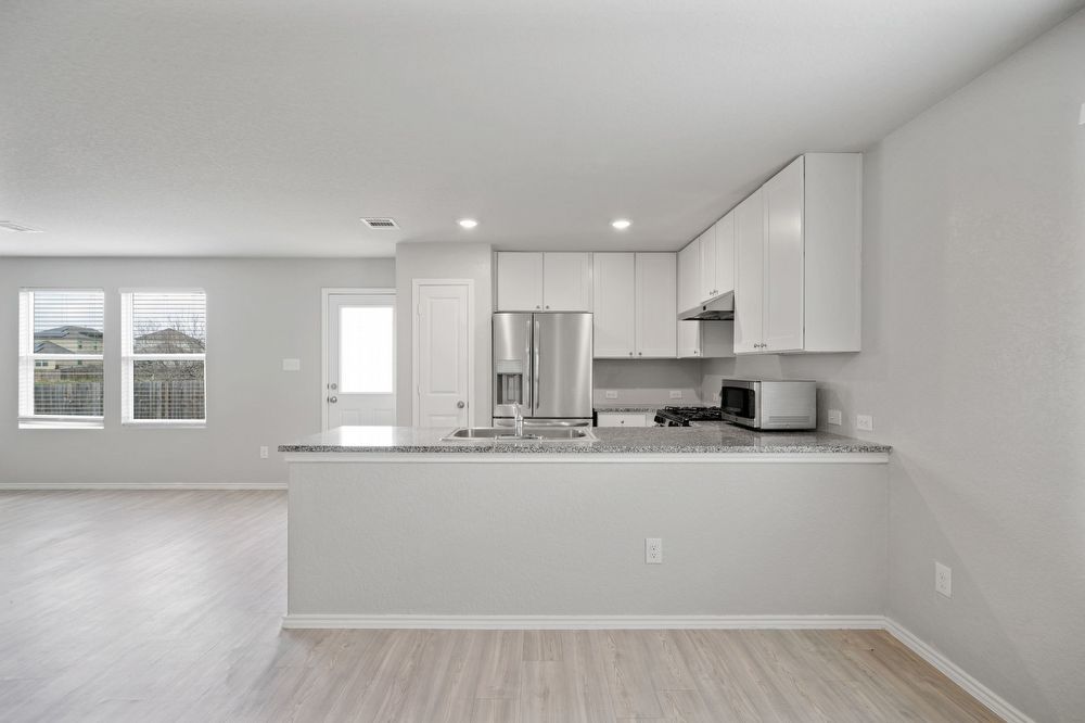 Discover modern elegance in this captivating ROSILLO RANCH property, featuring 4 bedrooms, 2.5 bathrooms, and an inviting open floor plan. Enjoy the stylish kitchen, expansive loft area, and large fenced-in backyard. This home offers a prime location with easy access to Randolph Air Force Base and Fort Sam, while situated just 15 minutes from the River Walk. The property is positioned at the head of a tranquil cul-de-sac, and backs up to a green space—an ideal haven for families. Sports enthusiasts will delight in the short drive to the Frost Bank Center, home of the Spurs. Experience a harmonious blend of functionality, style, and convenience in this noteworthy home.