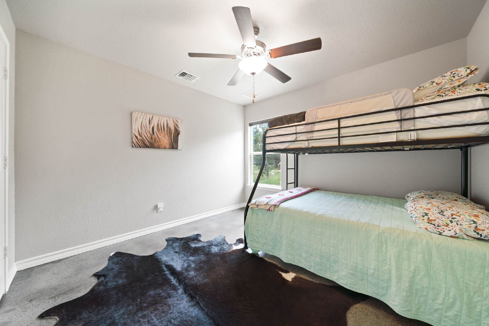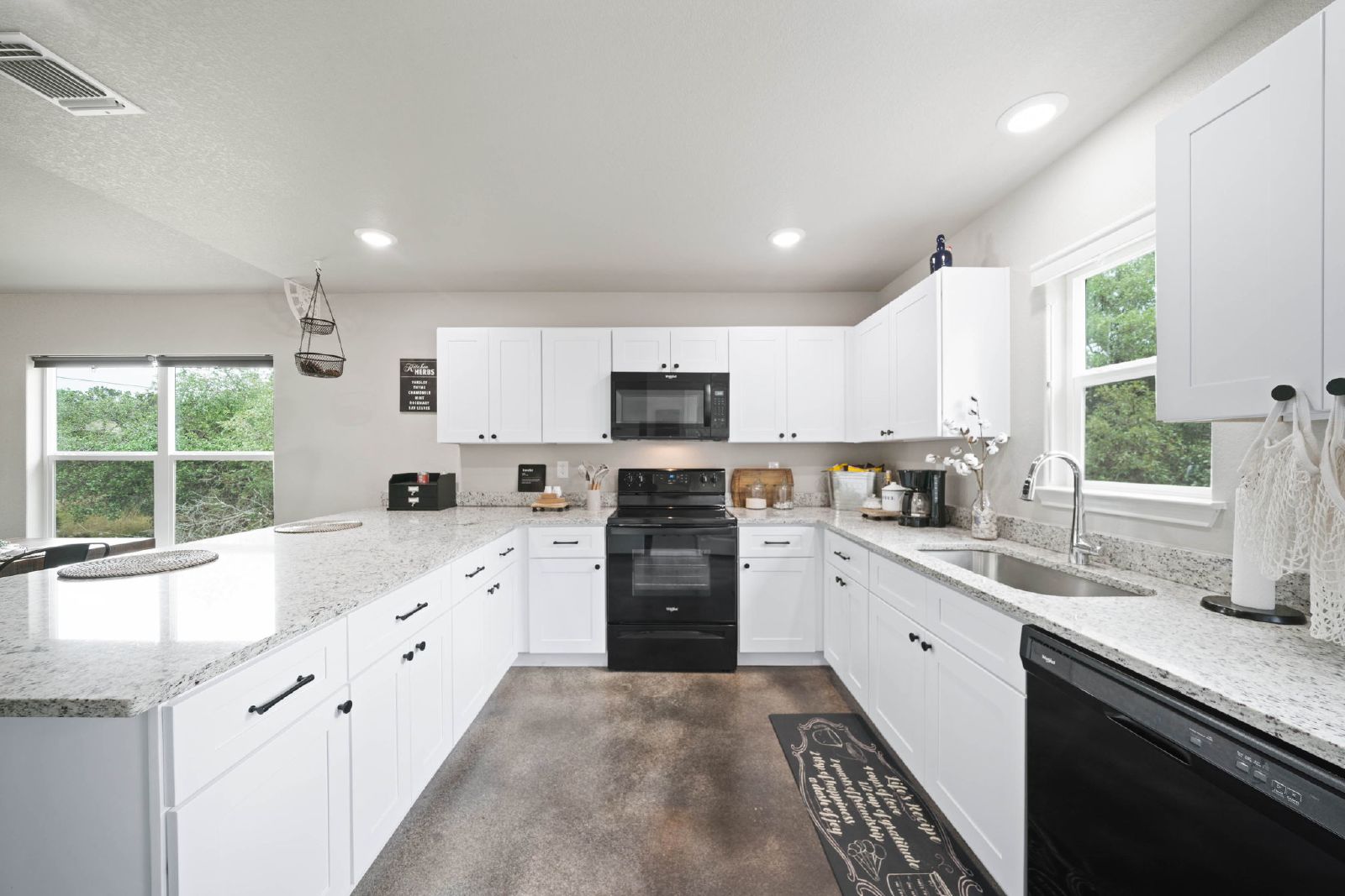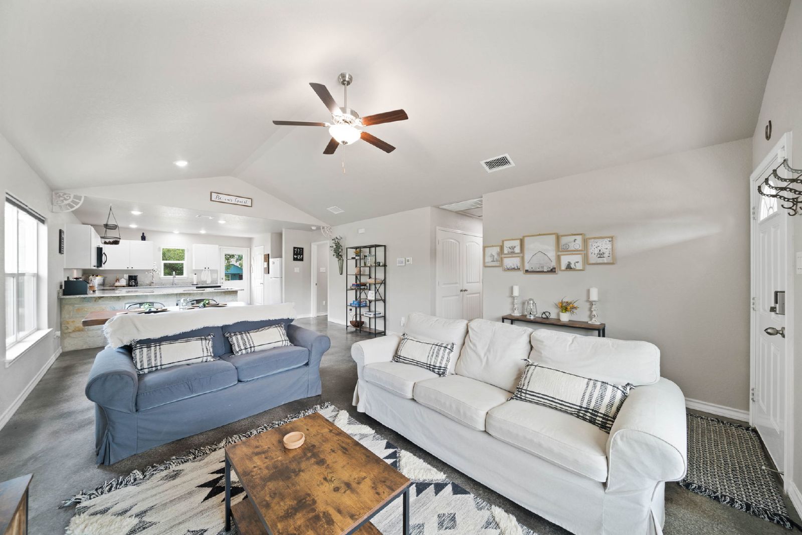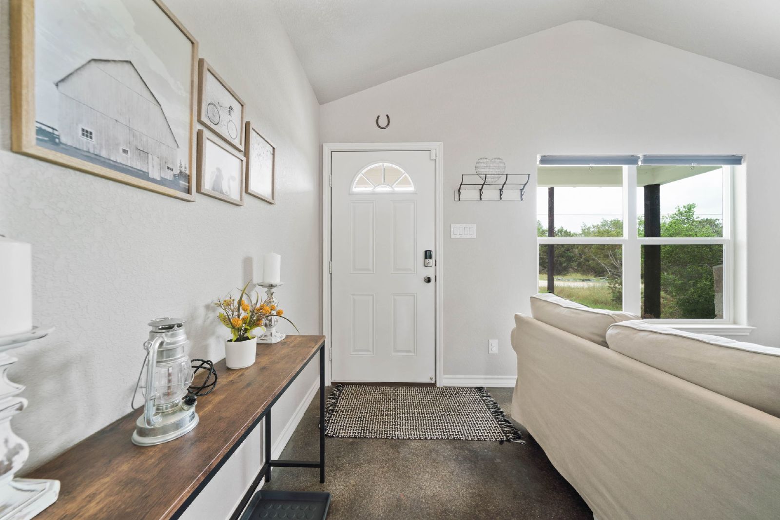 Step into your own slice of tranquility at Canyon Lake, where this inviting property offers a seamless blend of comfort and relaxation, perfect for both personal enjoyment and a lucrative Airbnb venture. This charming 3-bedroom, 2-bathroom home, currently utilized as a delightful short-term rental, is a haven of warmth and hospitality. Outside, the eye-catching rock design of the exterior sets the tone for the cozy ambiance within. As you step onto the welcoming front porch, you're greeted by an open-concept living area that effortlessly merges the living room and kitchen, creating a space that's perfect for socializing and unwinding. The convenient eat-in breakfast area adds to the casual charm, while the expansive master bedroom, complete with an ensuite and walk-in shower, offers a touch of luxury. Another bedroom provides additional sleeping accommodations, and the modern elegance of stained concrete floors runs throughout the home. Step outside to discover a spacious backyard oasis, ideal for relaxation and enjoying the company of furry friends. Positioned for convenience, with easy access to Rebecca Creek Park and its array of activities, including golfing and swimming, this property also benefits from access to a community pool and campsites through the HOA. And with New Braunfels just 25 miles away and the Comal River, a popular spot for river-floating enthusiasts, a mere 26 miles from your doorstep, there's no shortage of nearby attractions. Whether you're seeking a tranquil retreat or a savvy investment opportunity, this Canyon Lake home offers the perfect balance of comfort, convenience, and Texas hospitality. All furnishings are available for purchase separately. Don't miss out on this opportunity.
