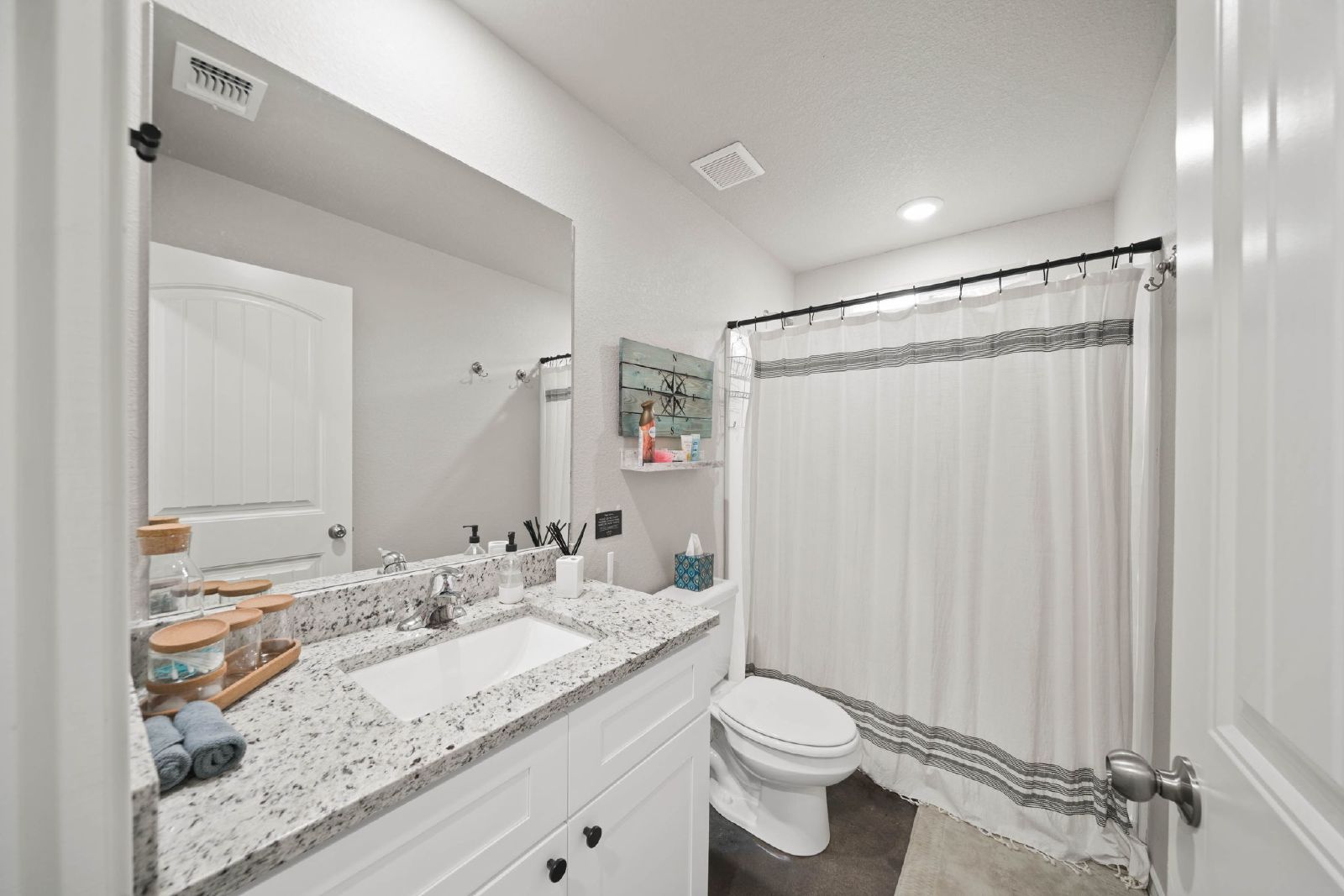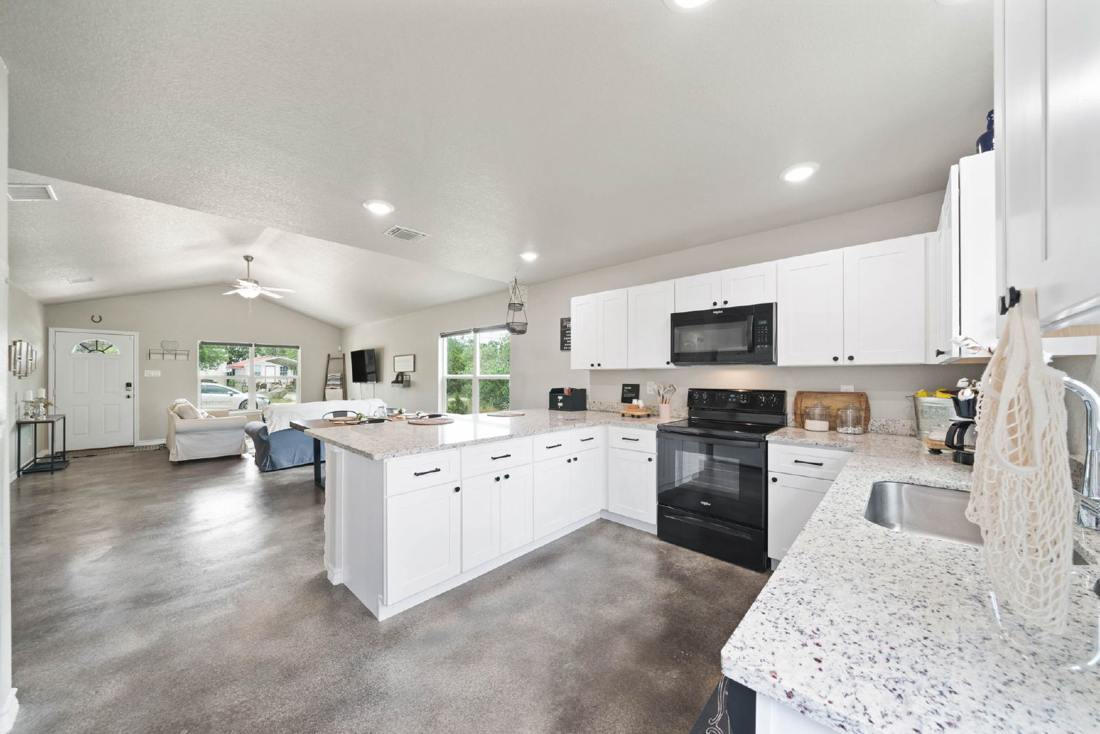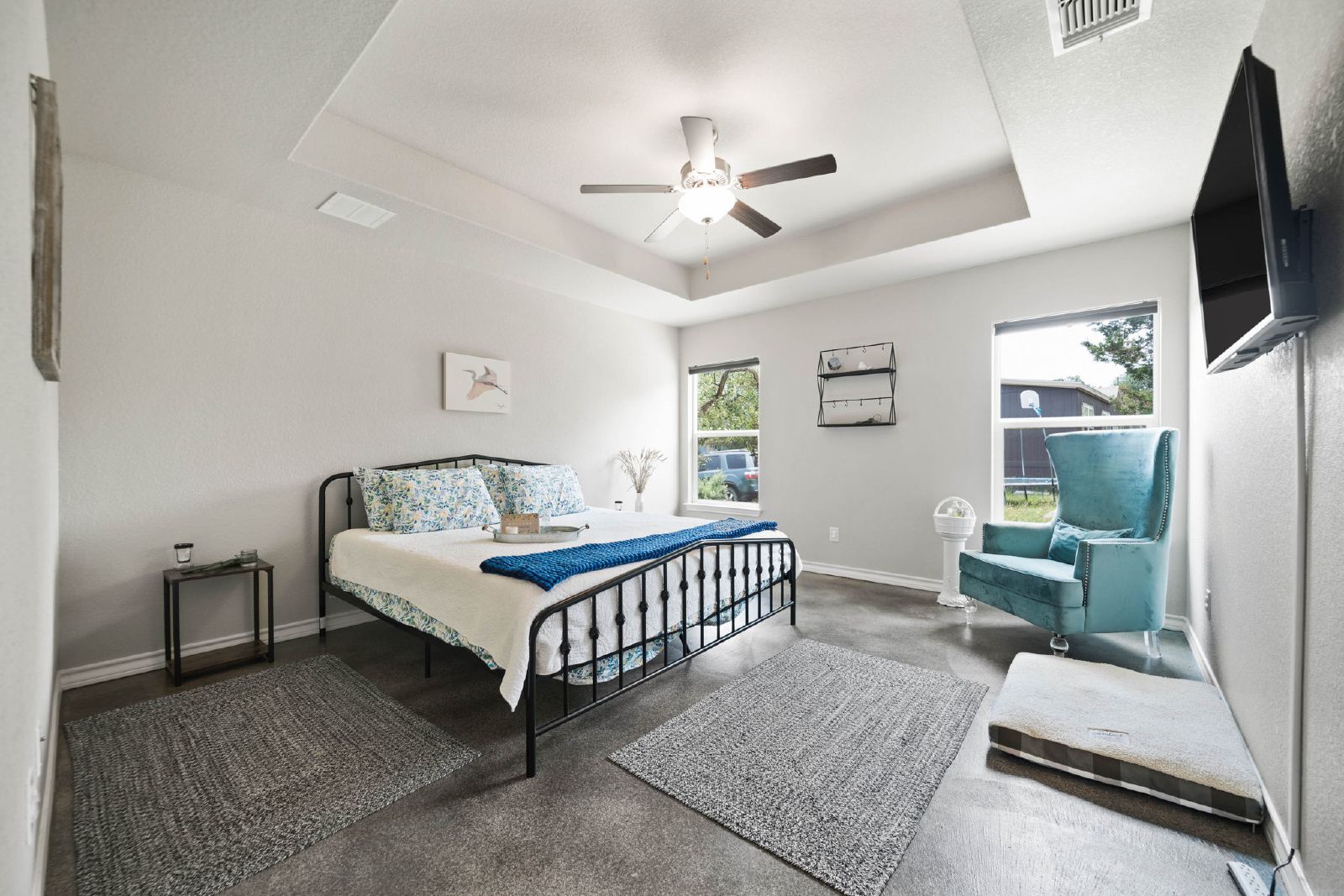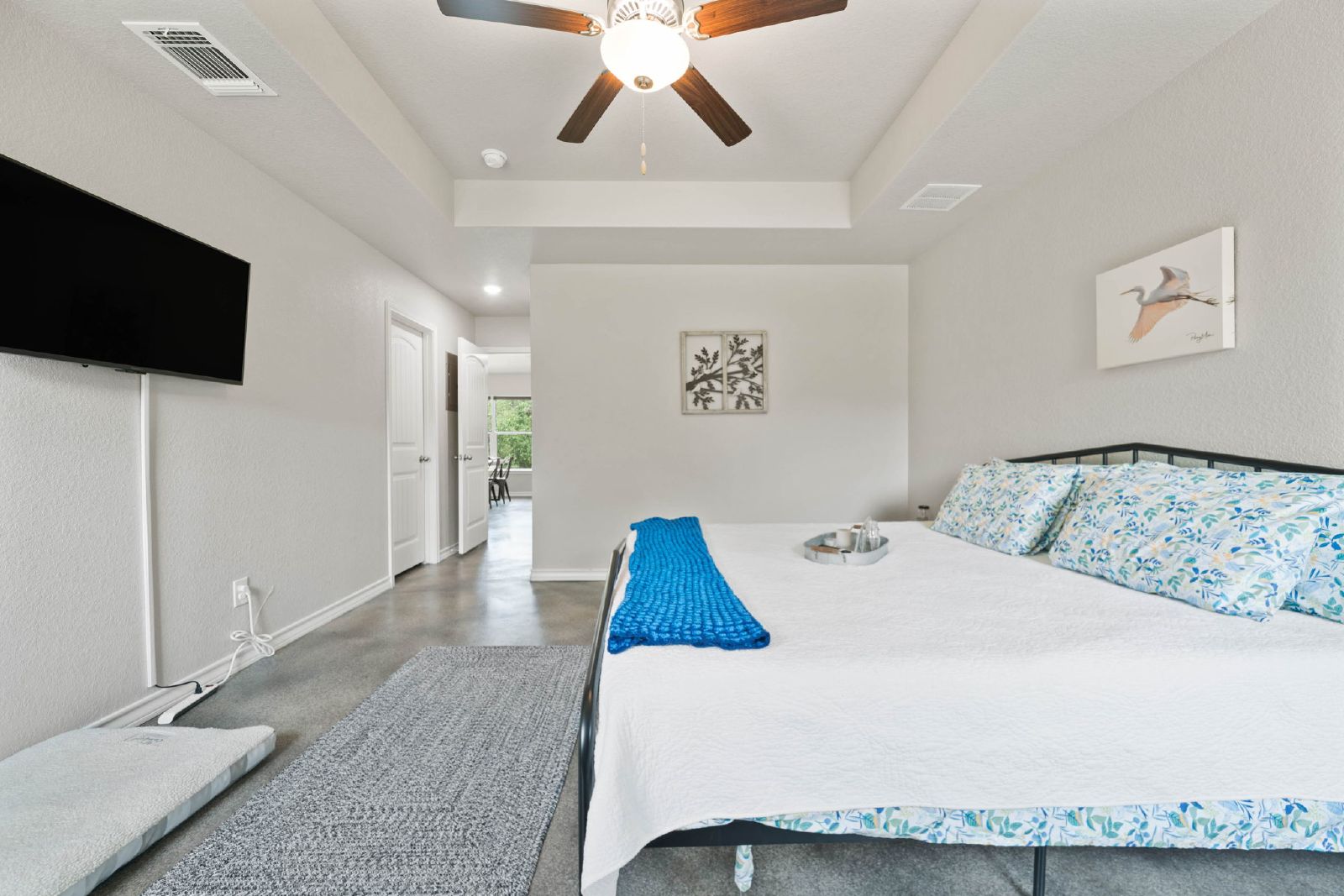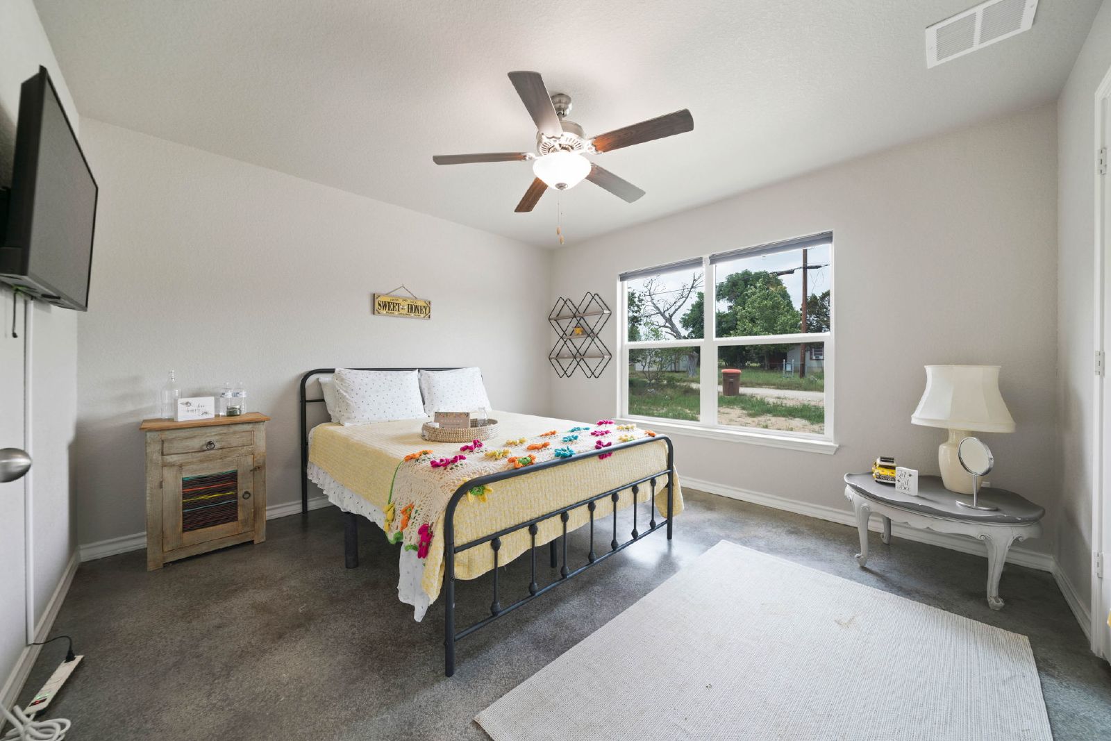 Step into your own slice of tranquility at Canyon Lake, where this inviting property offers a seamless blend of comfort and relaxation, perfect for both personal enjoyment and a lucrative Airbnb venture. This charming 3-bedroom, 2-bathroom home, currently utilized as a delightful short-term rental, is a haven of warmth and hospitality. Outside, the eye-catching rock design of the exterior sets the tone for the cozy ambiance within. As you step onto the welcoming front porch, you're greeted by an open-concept living area that effortlessly merges the living room and kitchen, creating a space that's perfect for socializing and unwinding. The convenient eat-in breakfast area adds to the casual charm, while the expansive master bedroom, complete with an ensuite and walk-in shower, offers a touch of luxury. Another bedroom provides additional sleeping accommodations, and the modern elegance of stained concrete floors runs throughout the home. Step outside to discover a spacious backyard oasis, ideal for relaxation and enjoying the company of furry friends. Positioned for convenience, with easy access to Rebecca Creek Park and its array of activities, including golfing and swimming, this property also benefits from access to a community pool and campsites through the HOA. And with New Braunfels just 25 miles away and the Comal River, a popular spot for river-floating enthusiasts, a mere 26 miles from your doorstep, there's no shortage of nearby attractions. Whether you're seeking a tranquil retreat or a savvy investment opportunity, this Canyon Lake home offers the perfect balance of comfort, convenience, and Texas hospitality. All furnishings are available for purchase separately. Don't miss out on this opportunity.