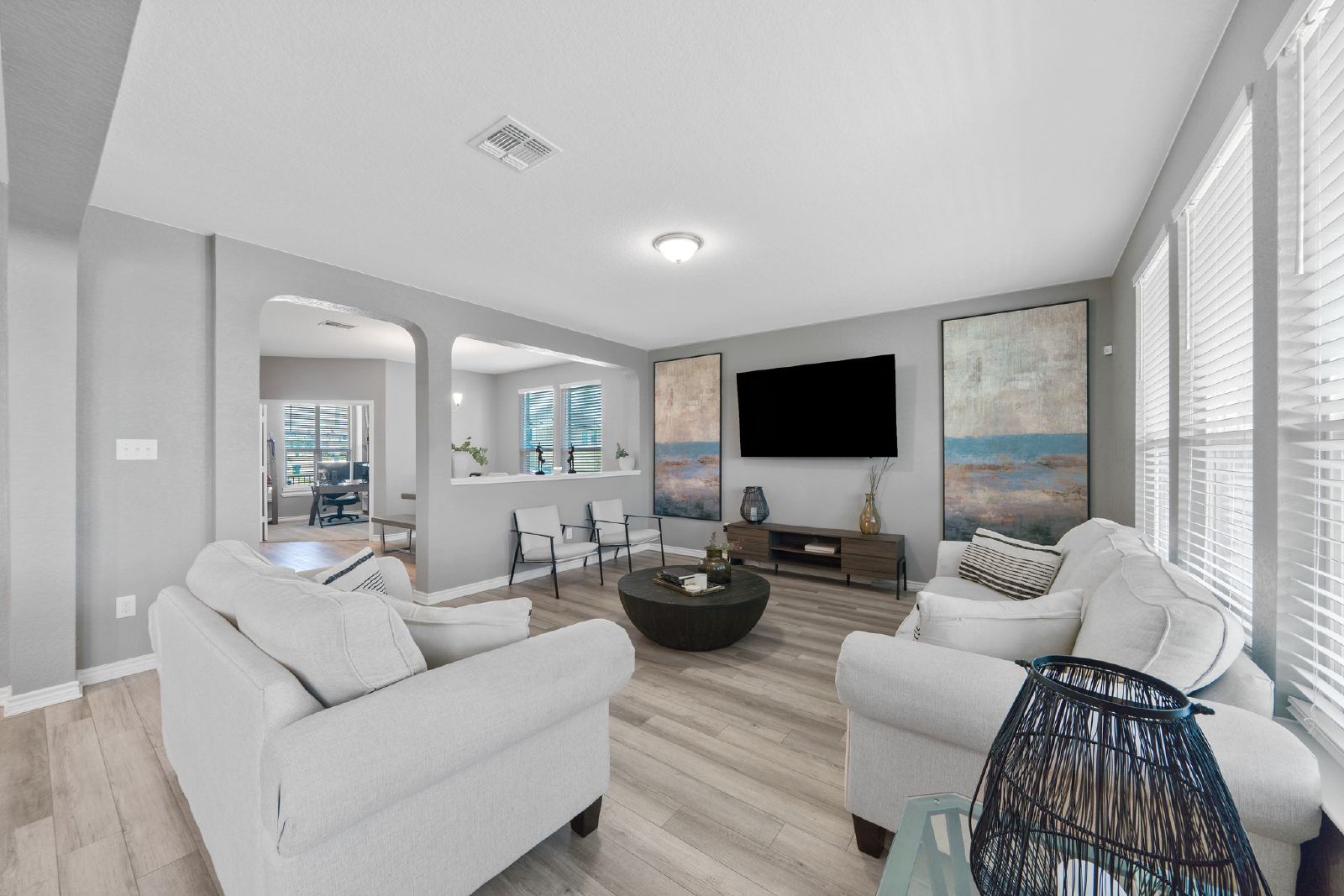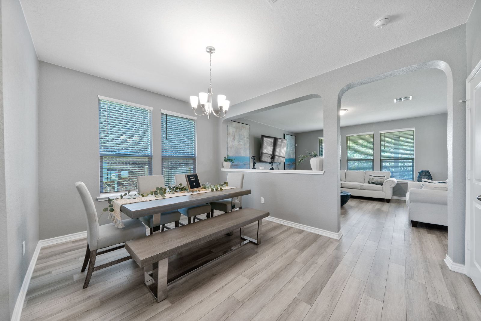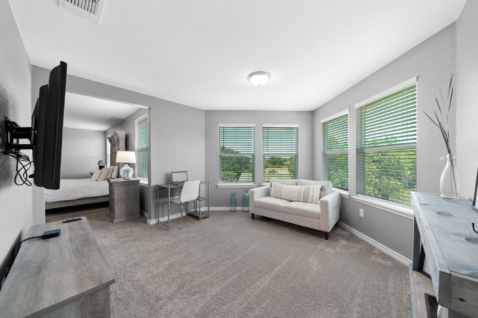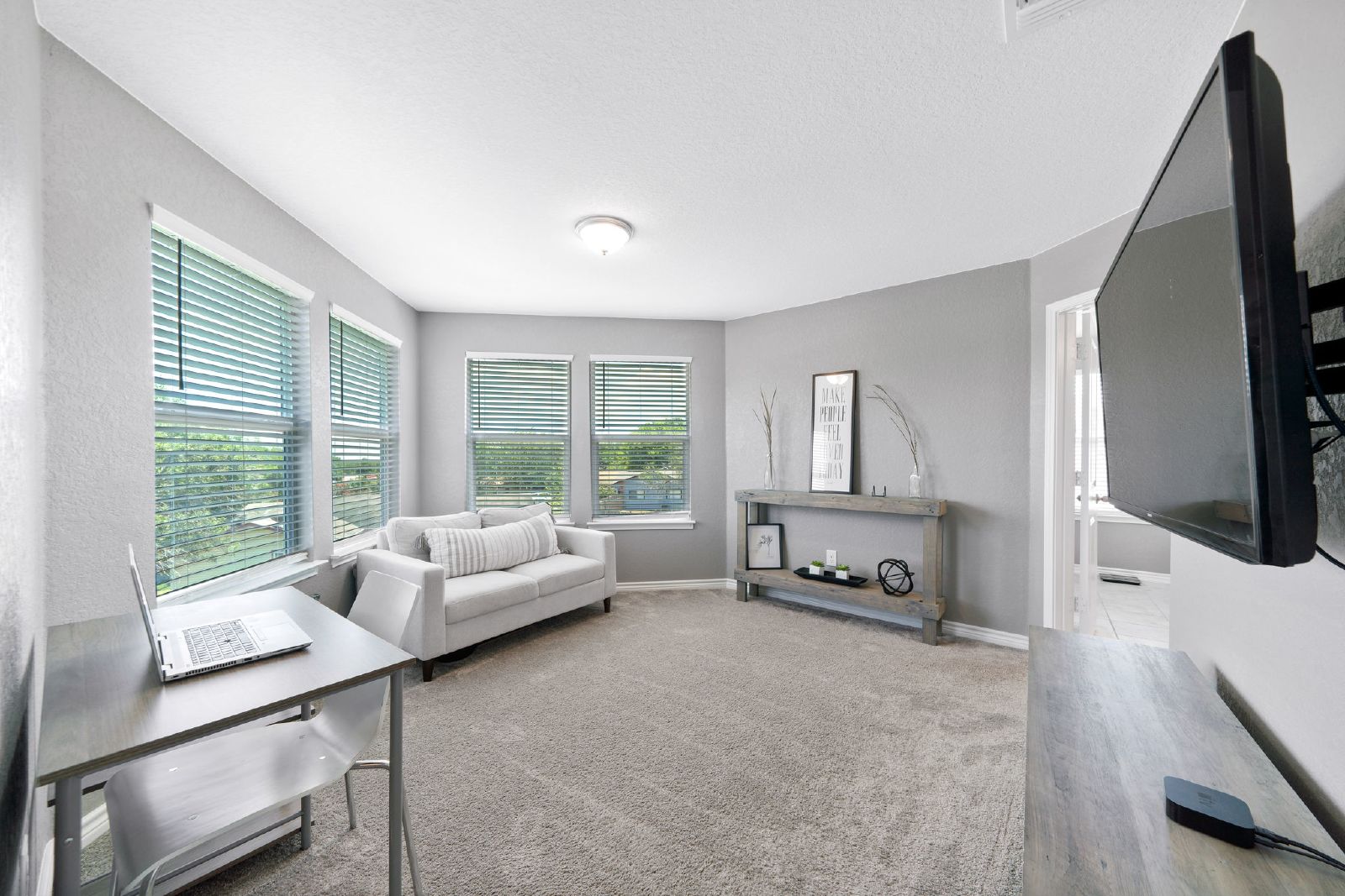 Welcome to your dream home in the coveted Kitty Hawk subdivision! This stunning 3-bedroom, 2-bath property offers a perfect blend of comfort and elegance, designed to meet all your lifestyle needs. Step inside to an open floor plan that seamlessly connects the living spaces, creating a spacious and inviting atmosphere. The heart of the home is the island kitchen, complete with stainless steel appliances, a breakfast bar, an eat-in area, and plenty of cabinets and counter space for all your culinary adventures. Adjacent to the kitchen, you'll find a cozy dining room perfect for family meals and gatherings. Need a dedicated workspace or a place for hobbies? This home features a study room and a game room, providing versatile spaces for work and play. The primary suite is a true retreat, boasting a separate sitting area and an ensuite bathroom with dual vanities, an XL walk-in shower, and a generous walk-in closet. Enjoy outdoor living in the huge backyard, ideal for entertaining or simply relaxing in your private oasis. Located in Compano Ridge, this home is just minutes away from The Forum, military bases, schools, and medical facilities, offering convenience and accessibility. Don't miss out on this incredible leasing opportunity!