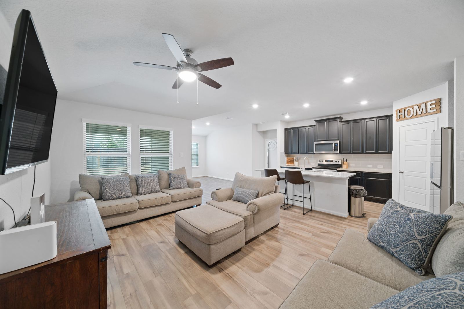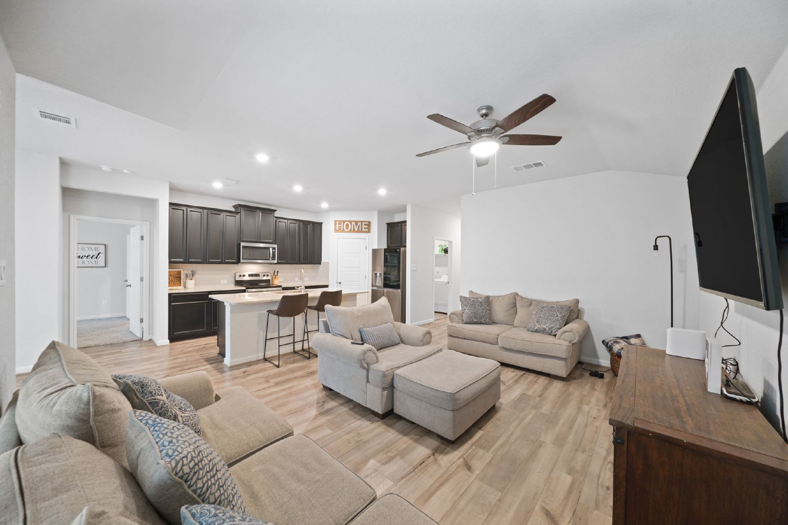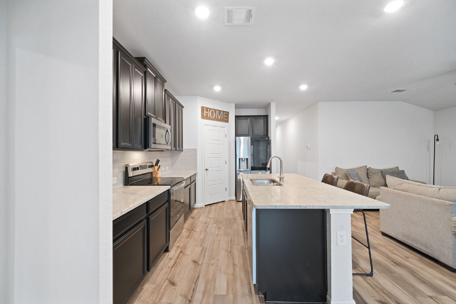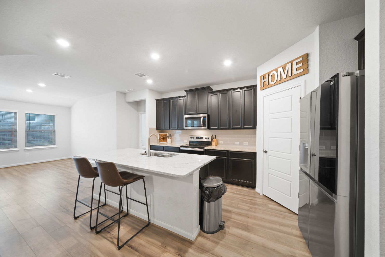 Welcome to this beautiful home located in the sought-after Remington Ranch subdivision! This 4-bedroom, 2-bathroom residence features an open floor plan perfect for comfortable living and entertaining. The kitchen is a chef's dream, boasting granite countertops, an island, a breakfast bar, and included appliances to make cooking a breeze. The seamless flow from the kitchen to the living and dining areas creates an inviting space for gatherings. Step outside to enjoy the large fenced backyard, ideal for outdoor activities, pets, or simply relaxing in privacy. Conveniently located with easy access to major highways, this home puts you just minutes away from shopping, dining, and entertainment. Don't miss the chance to lease this fantastic property-schedule your showing today!
