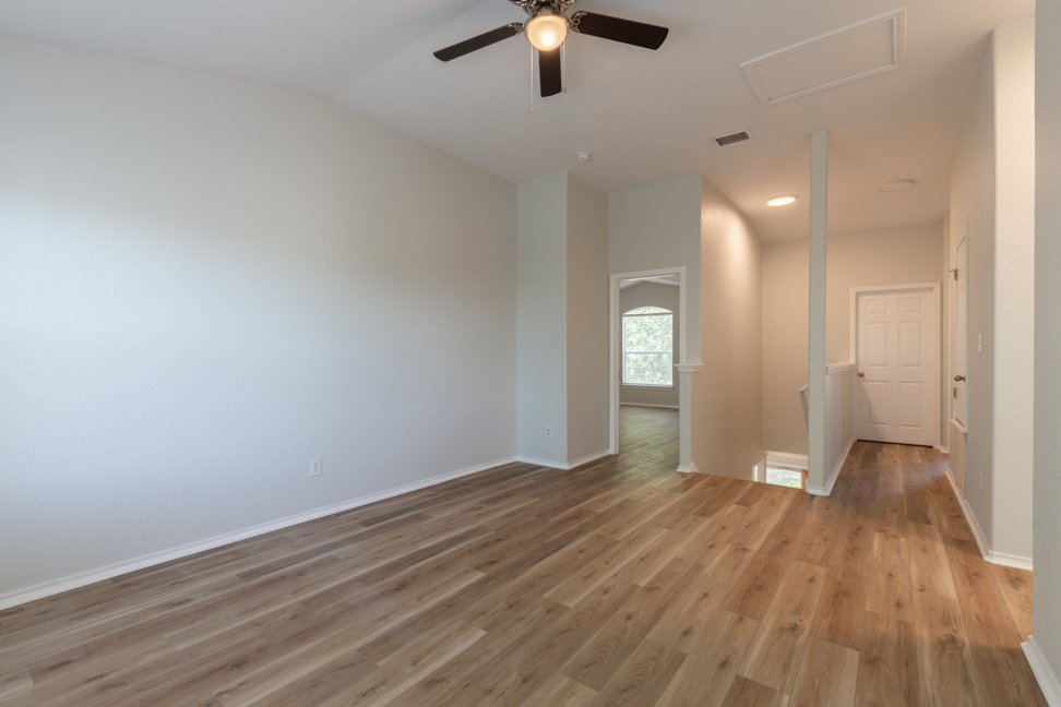 This meticulously cared-for 4-bedroom, 2.5-bathroom home is nestled on a beautifully landscaped lot in a quiet cul-de-sac within Cibolo Vista. Upon entry, you're welcomed by bright tile flooring that flows throughout a thoughtfully designed floor plan, perfect for both everyday living and entertaining. The formal dining room features expansive windows and a stylish chandelier, creating an inviting space for gatherings. The gourmet kitchen is equipped with stainless steel appliances, granite countertops, and a large walk-in pantry. It opens to a cozy breakfast area and a spacious living room, with a glass door that leads to a covered patio and private fenced backyard—ideal for outdoor enjoyment. Upstairs, you'll find a vaulted bonus room that can easily be transformed into a home office, playroom, or media space. The secluded primary suite offers a relaxing retreat with a spa-like en-suite bathroom, complete with a soaking tub, separate shower, and a generous walk-in closet. Additional features include a large laundry room and an oversized two-car garage. Conveniently located just 12 minutes from Randolph AFB and 30 minutes from Fort Sam Houston and downtown San Antonio.
