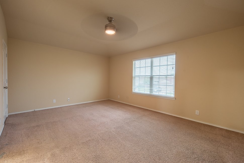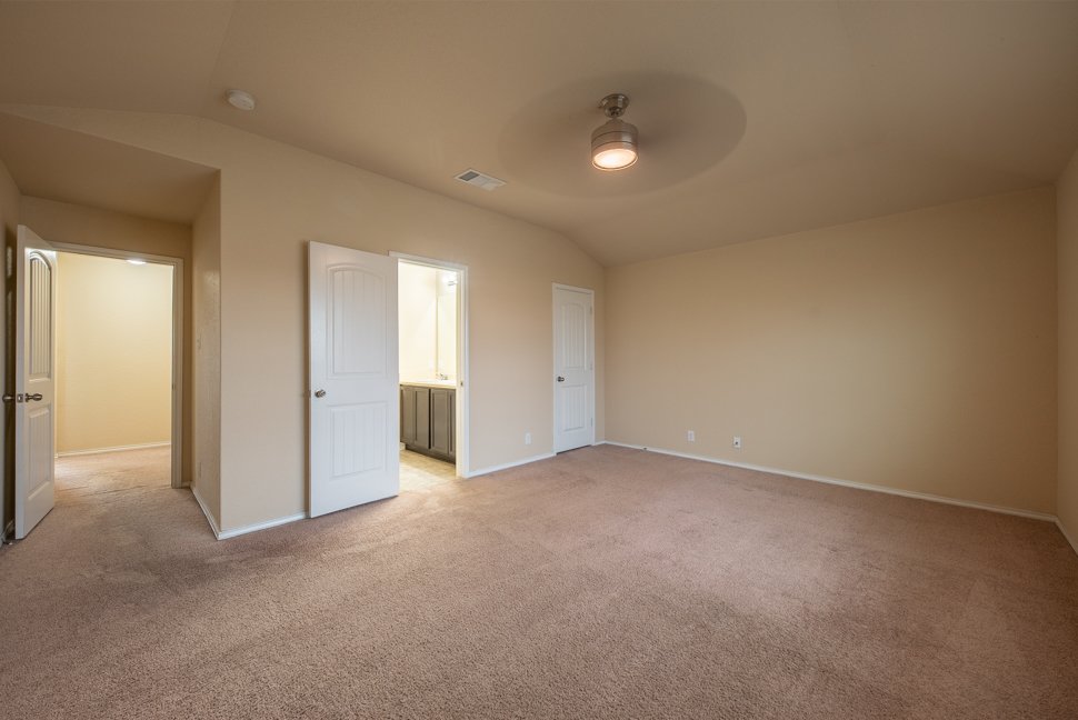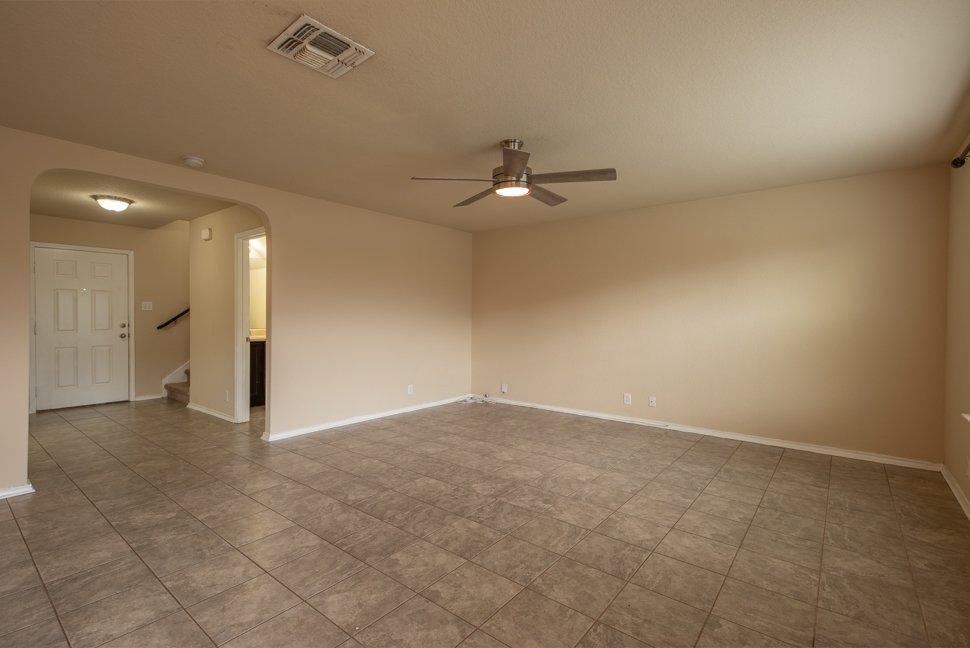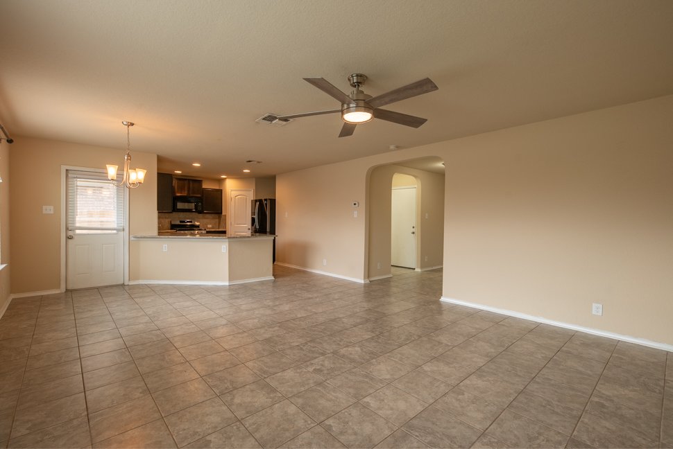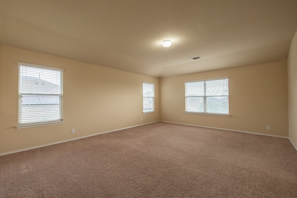 Welcome to 6114 Hackberry Pond, a beautifully maintained 3-bedroom, 2.5-bath home boasting over 2,043 sq ft of stylish living space. From the charming brick exterior with unique diamond design to the inviting arched entry, this home offers exceptional curb appeal and a warm welcome. Step inside to freshly painted interiors, upgraded LED lighting, and a bright, open-concept layout. The living and dining area is filled with natural light, featuring a modern nickel-finished chandelier. The gourmet kitchen is a chef's dream with granite countertops, tiled backsplash, recessed lighting, ample cabinetry, black appliances, and a walk-in pantry. Upstairs, a massive loft offers flexible space for a media room, playroom, or home office. The spacious master retreat includes a walk-in closet and a luxurious en-suite bath with a floor-to-ceiling tiled shower, soaking tub, dual vanities, and chrome fixtures. Two generously sized bedrooms feature wide closets, and share a full bathroom with a tiled tub and nickel fixtures. Enjoy the outdoors in the large backyard with a covered patio, perfect for entertaining or relaxing evenings. Don't miss out on this beautiful home - schedule your showing today!