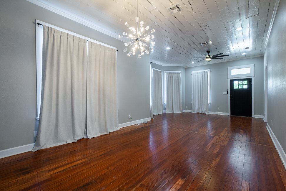 Step inside and fall in love with the blend of historic character and modern upgrades. This beautifully preserved home features original hardwood floors, 12+ ft ceilings with exposed shiplap, and large windows that flood the open-concept living, dining, and kitchen areas with natural light.